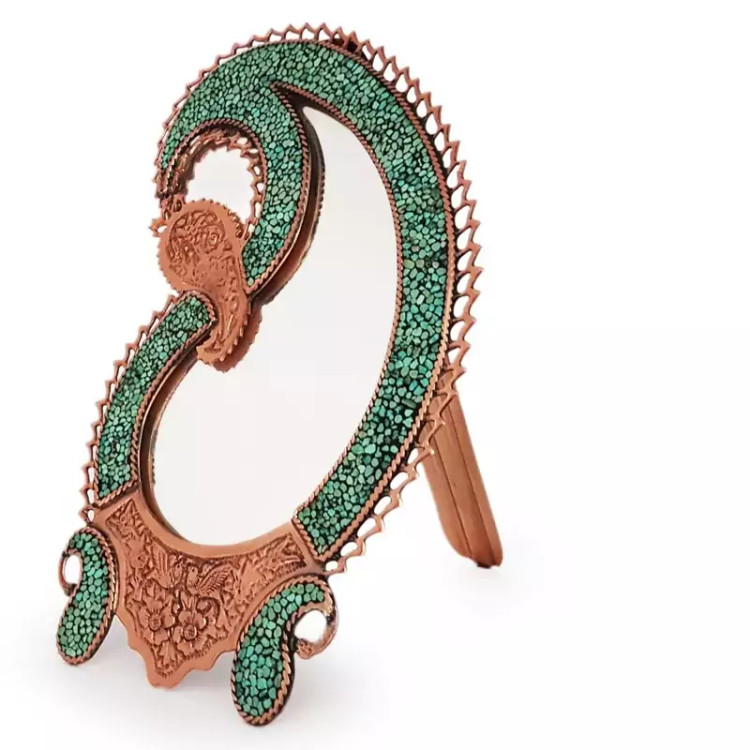 آینه بته جغه فیروزه کوبی نیشابور و قلم زنی شده متوسط 40 سانتی صنایع دستی سایروس