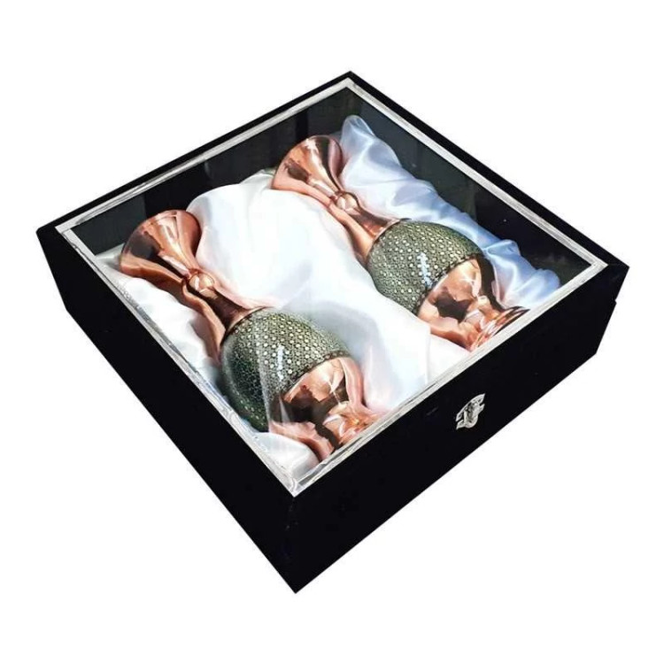 ست هدیه جفت گلدان 16 مس و خاتم ست هدیه شرکتی و هدیه سازمانی و کادویی و دکوری صنایع دستی سایروس