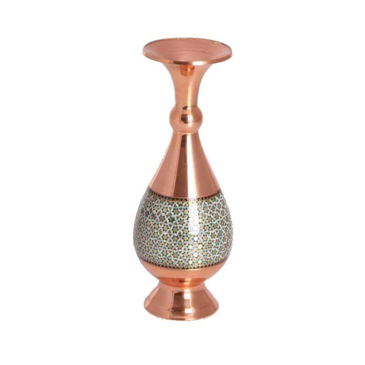 گلدان 16 سانتی مس و خاتم سکه ای با کیفیت عالی صنایع دستی سایروس گلدان خاتم کاری مسی
