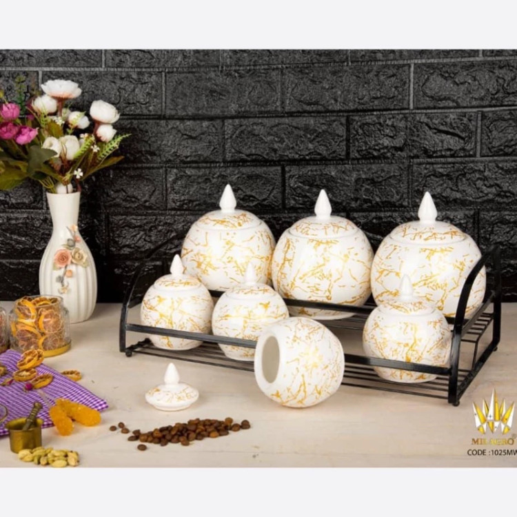 ست پاسماوری 7 پارچه دوما سفید طلایی صدفی همراه استند
