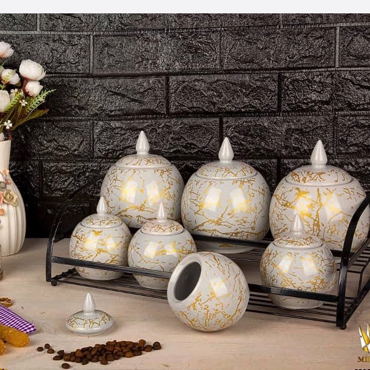 سرویس 7 پارچه همراه استند دوما طوسی طلایی صدفی
