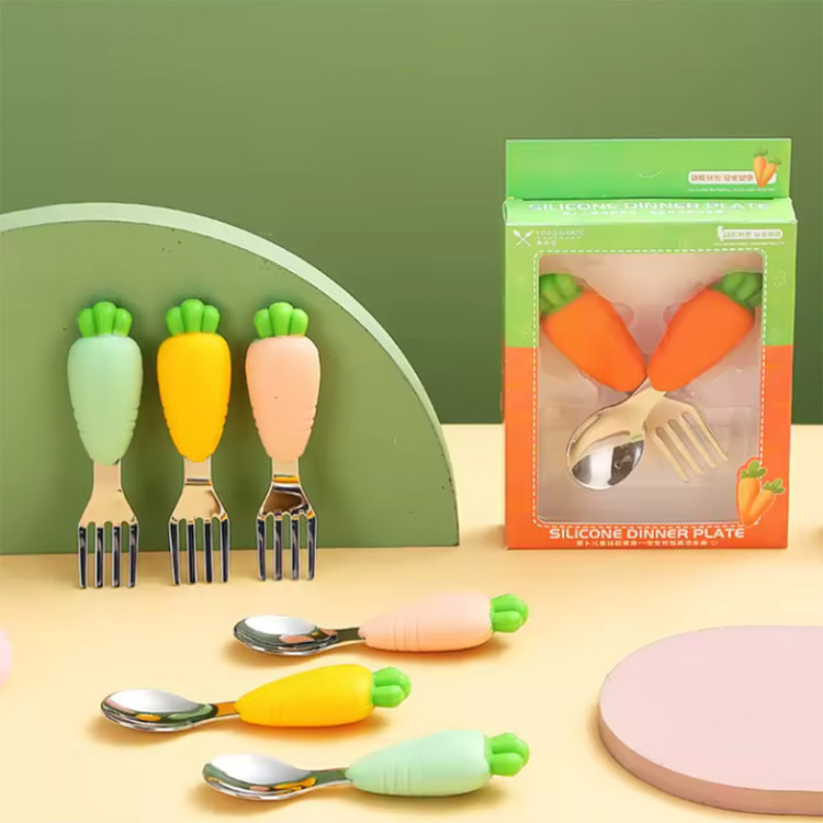 قاشق و چنگال کودک طرح هویج بسته 2 عددی