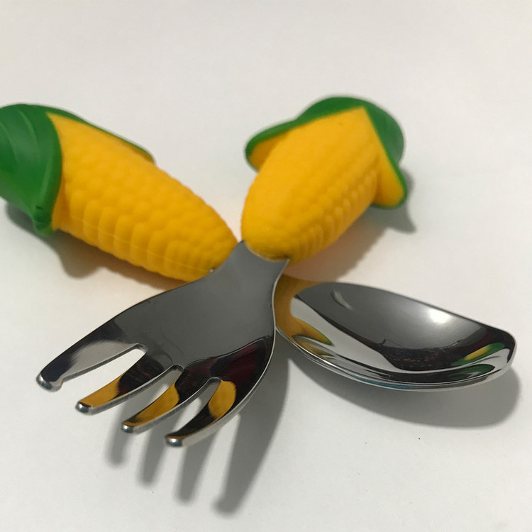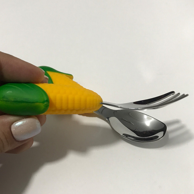 قاشق و چنگال کودک طرح ذرت مجموعه 2 عددی