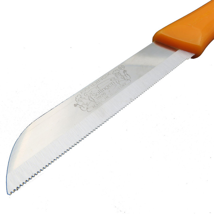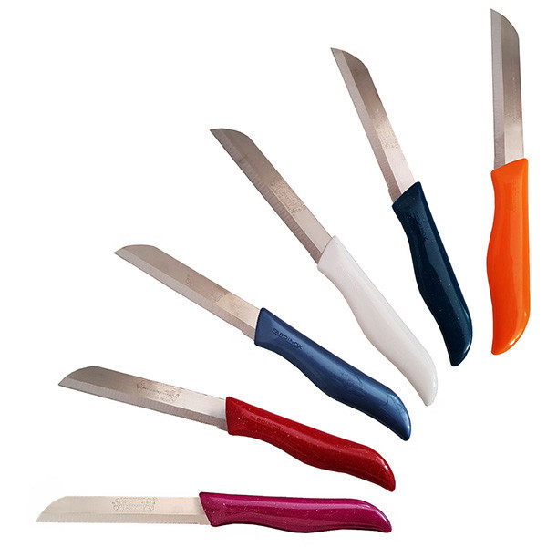 رنگ دسته های سفید و نارنجی ساده است اما رنگ های بنفش ، سورمه ای ، زرشکی اکلیلی است .تیغه های چاقو از کیفیت و فناوری المان تهیه شده و به صورت اره ای میباشد.