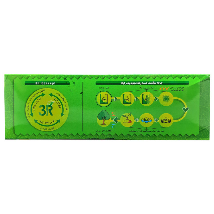 تعداد هر رول 30 عدد سازگار با محیط زیست محکم و مقاوم،بدون نشتی فیلم پلی اتیلن سنگین و سبک 100% مواد نو به علاوه افزودنی اکسا زیست تخریب پذیر عمر مفید محصول 2 تا 5 سال پس از بازکردن بسته می باشد.