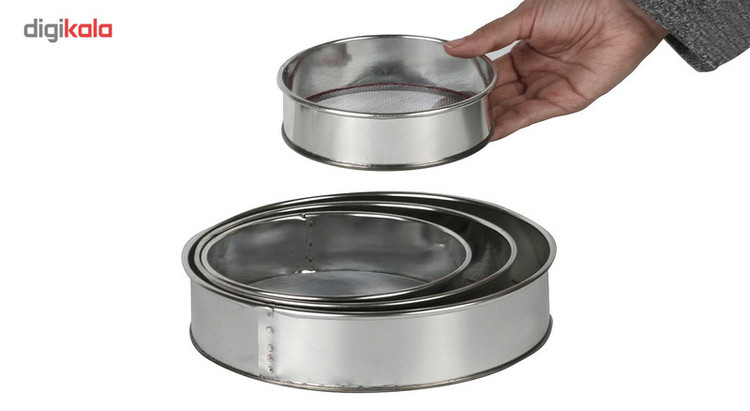 ابعاد الک 1(بزرگ): 23× 5× 23 سانتیمتر (خیلی ریز) - ابعاد الک 2 : 20 × 5× 20 سانتیمتر (ریز) - ابعاد الک 3 : 16× 4× 16سانتیمتر (ریز) -ابعاد الک 4 : 13× 3× 13 سانتیمتر (ریز)