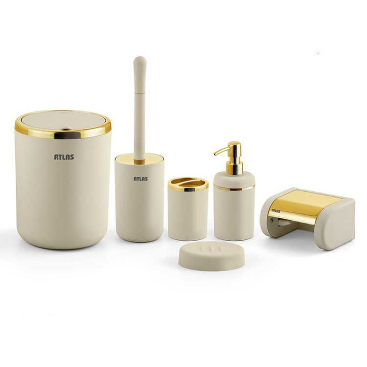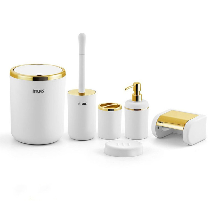 سطل 19x19x22 - برس توالت شوی 10x10x35 - جامایع 10x10x20 - پایه رول دستمال کاغذی 15x12x8 - جا صابونی 12x9x3 - جاسواک 8x8x11