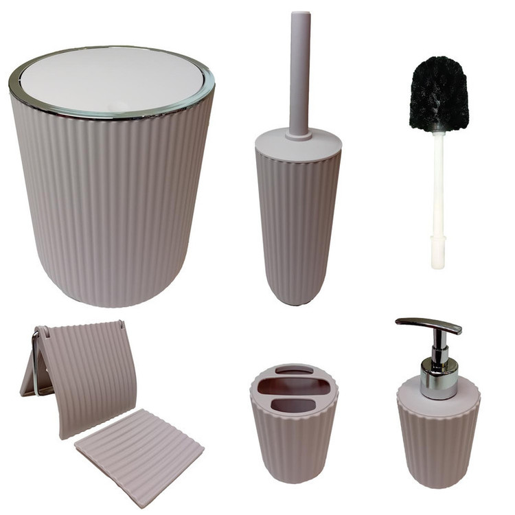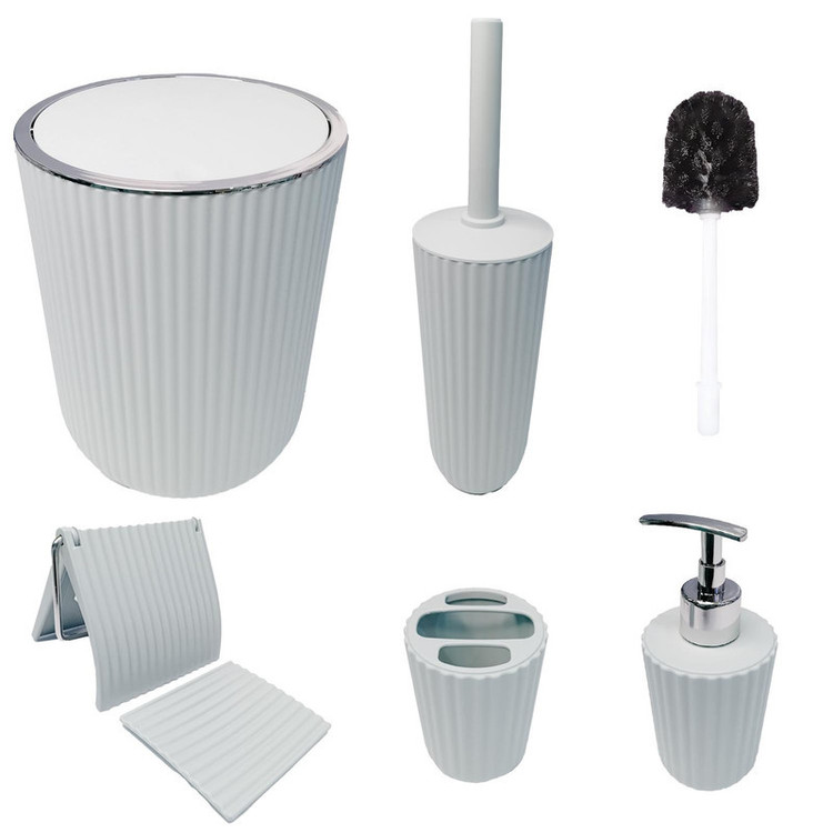 ست سرويس بهداشتي 6 پارچه همارا شامل يک عدد سطل يک عدد جا مايع دستشويي يک عدد جا فرچه و فرچه يک عدد جامسواکي يک عدد ليوان يک عدد جا صابوني