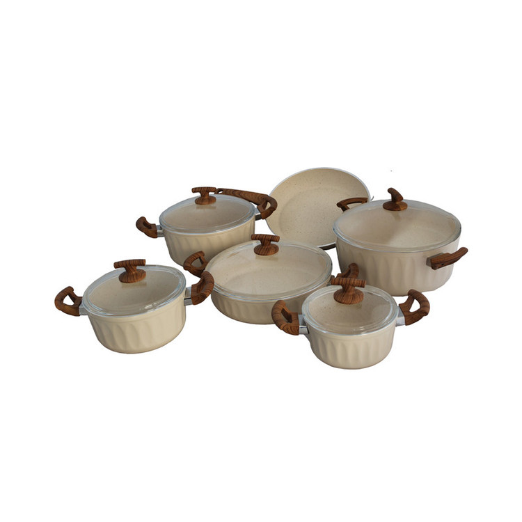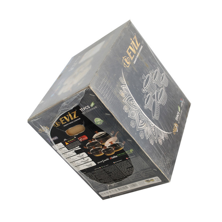 سرویس قابلمه الیپس 11 پارچه هست که دارای 4 قابلمه در سایز های :18-22-26-30 و یک تابه دودسته دربدار سایز 30 و یک تابه تک دسته در سایز 30 می باشد.این سرویس گرانیتی است و ضد خط و خش دارای سوپاپ خروج هوا و در رنگبندی های مختلف تولید شده است.