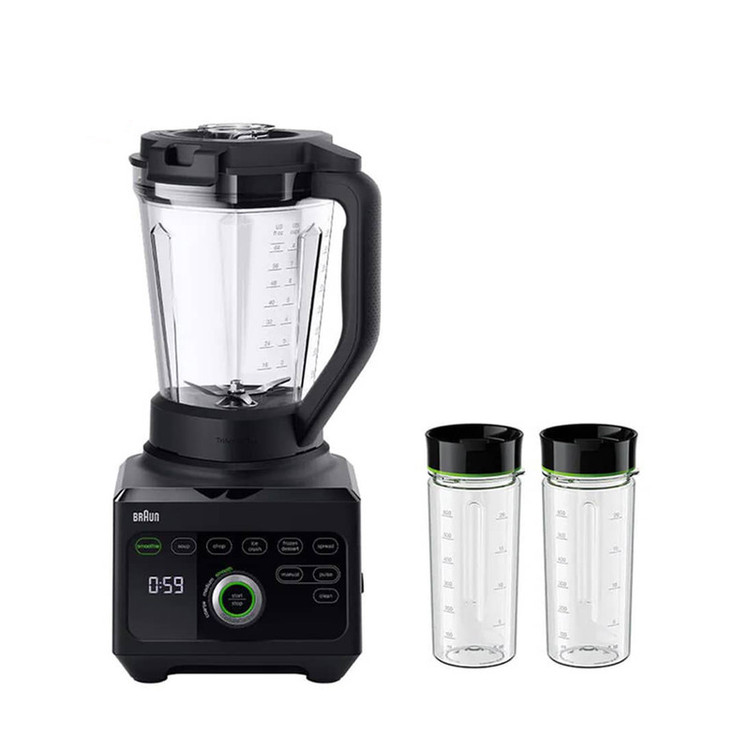 دارای عملکرد پالس، محفظه سیم، صفحه نمایش لمسی، قابلیت خرد کردن یخ، سرعت گردش 45 هزار دور در دقیقه، عاری از PBA، دارای 18 برنامه غذایی