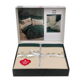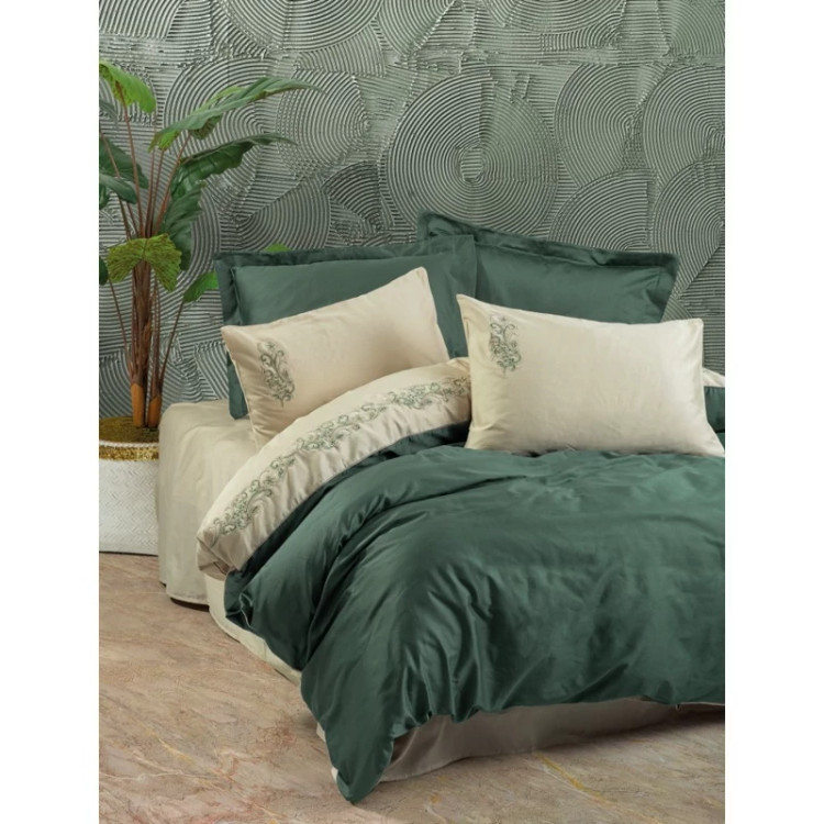 ست ملحفه کاتن باکس مدل Brode Saten Andy Yesil دو نفره 6 تکه