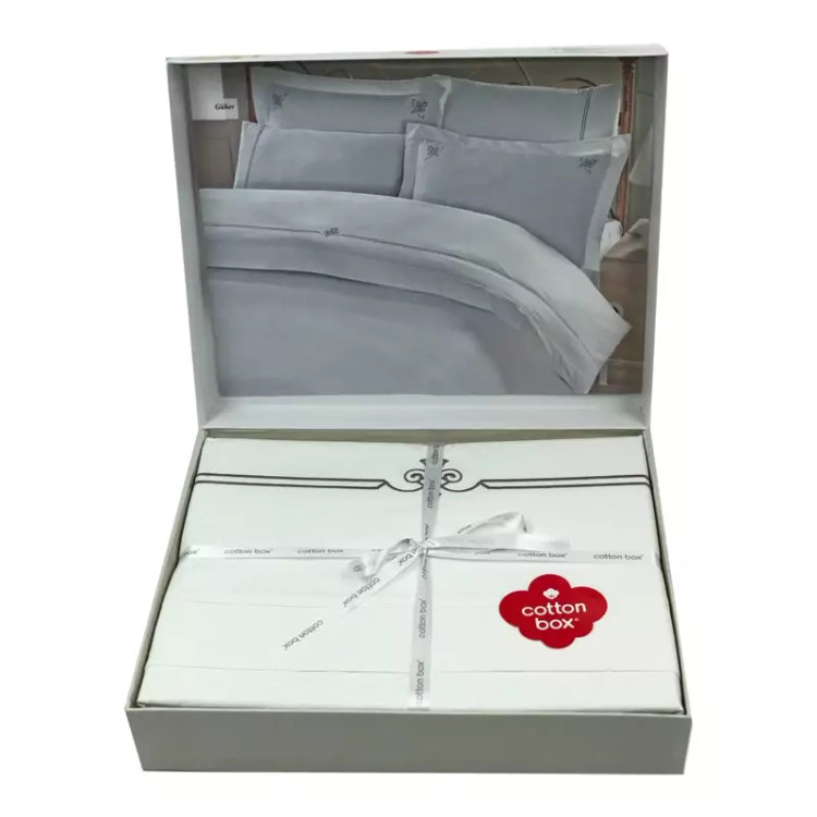 ست ملحفه کاتن باکس مدل Classic Guher Beyaz دو نفره 6 تکه
