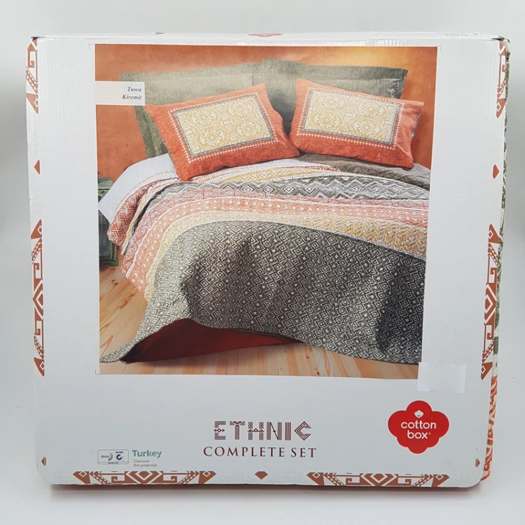 ست روتختی پنبه دوزی کاتن باکس مدل Ethnic Tuwa Kiremit دو نفره 4 تکه