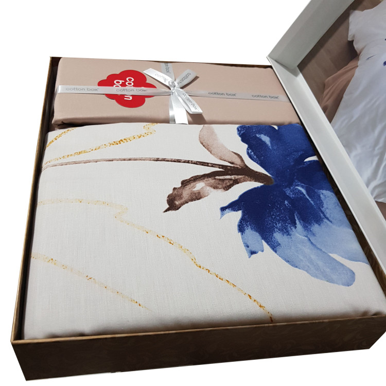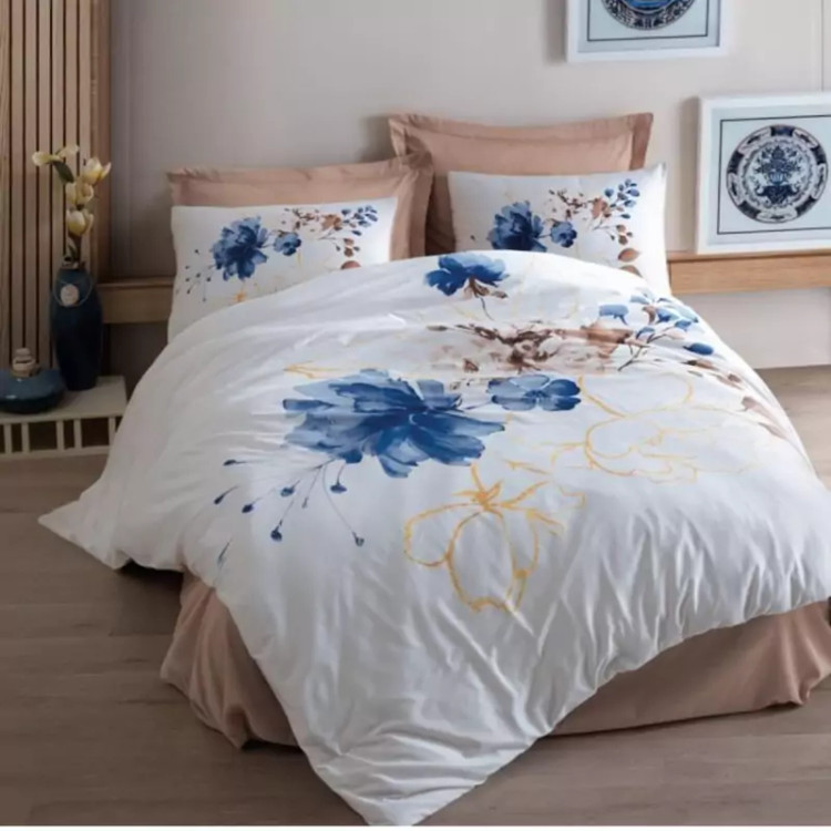 ست ملحفه کاتن باکس مدل Baskili Saten Carmine Bej دو نفره 6 تکه