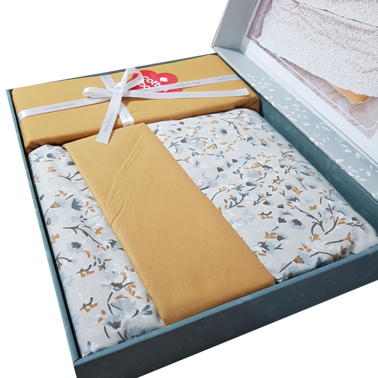 ست ملحفه کاتن باکس مدل Petite Posy Bej تک نفره 3 تکه