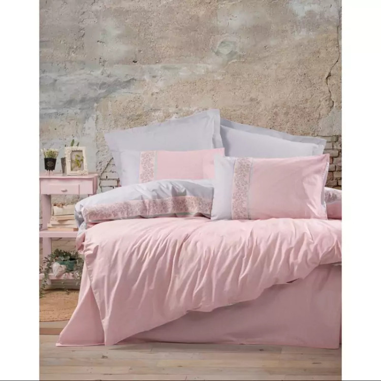 ست ملحفه کاتن باکس مدل Folk Art Mila Pembe دو نفره 4 تکه