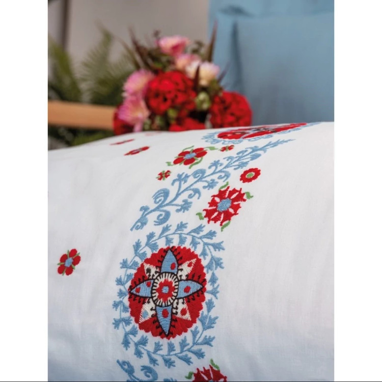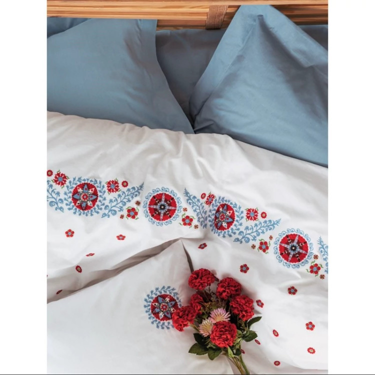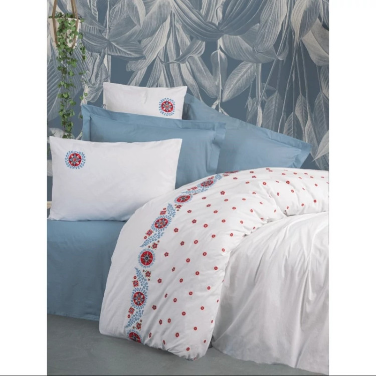 ست ملحفه کاتن باکس مدل Brode Rnf Mabel Mavi دو نفره 6 تکه
