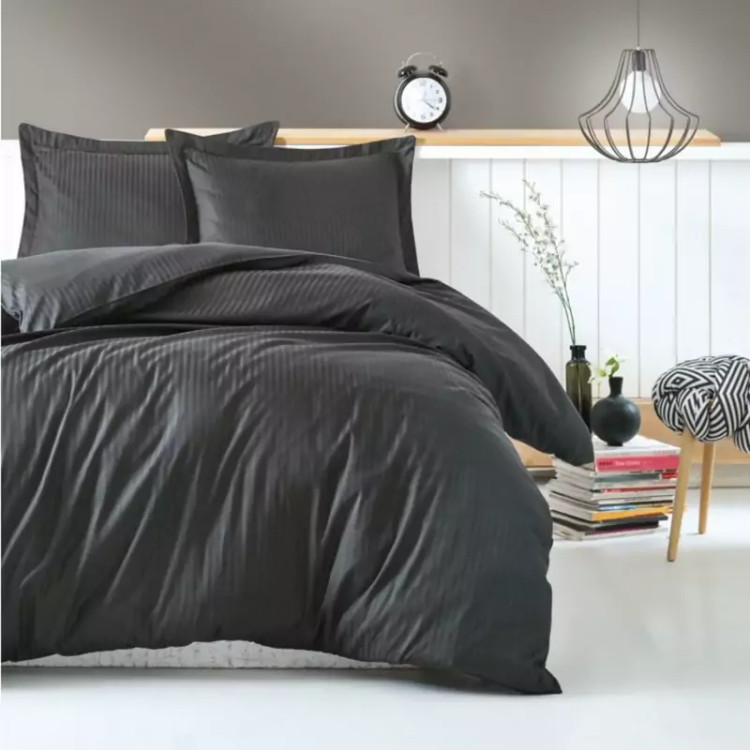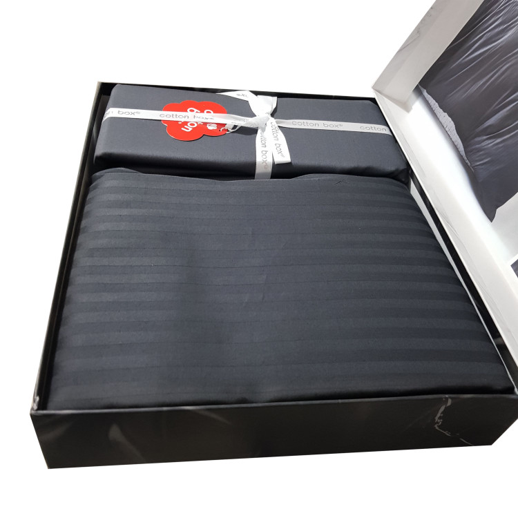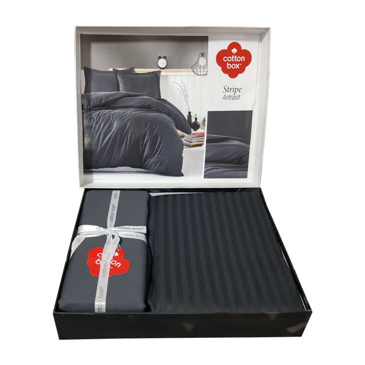 ست ملحفه کاتن باکس مدل Elegant Stripe Antrasit دو نفره 4 تکه