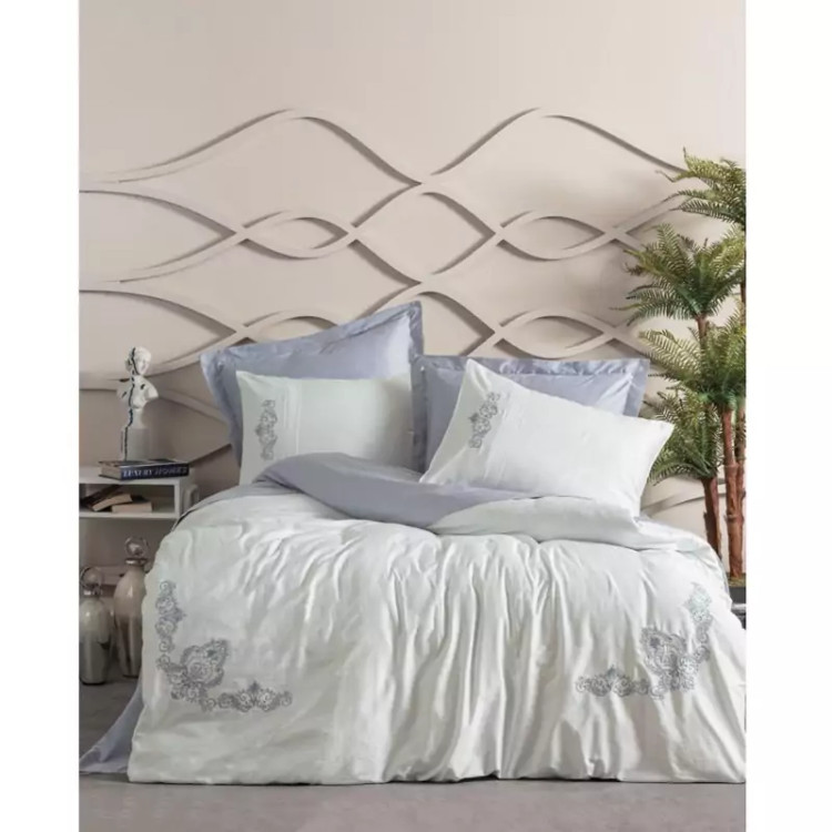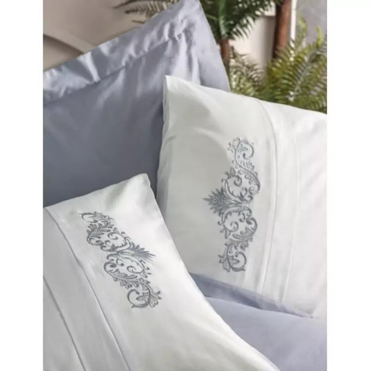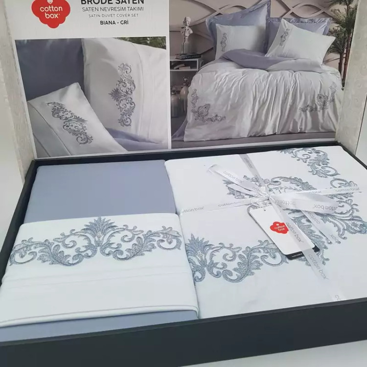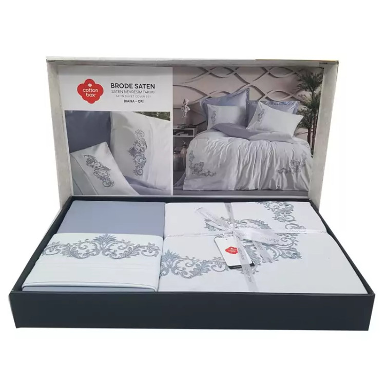 ست ملحفه کاتن باکس مدل Brode Saten Biana Gri دو نفره 6 تکه