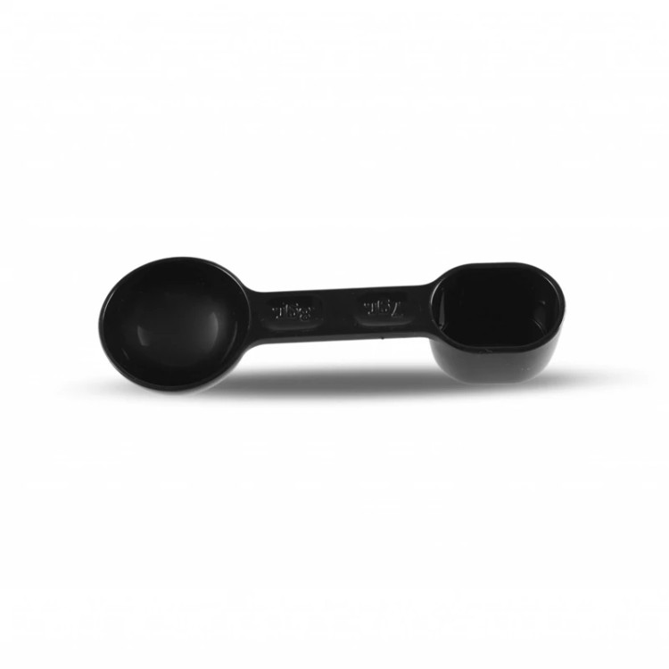 یک برس تمیز کننده و یک قاشق اندازه گیری قهوه کف دار وجود دارد.