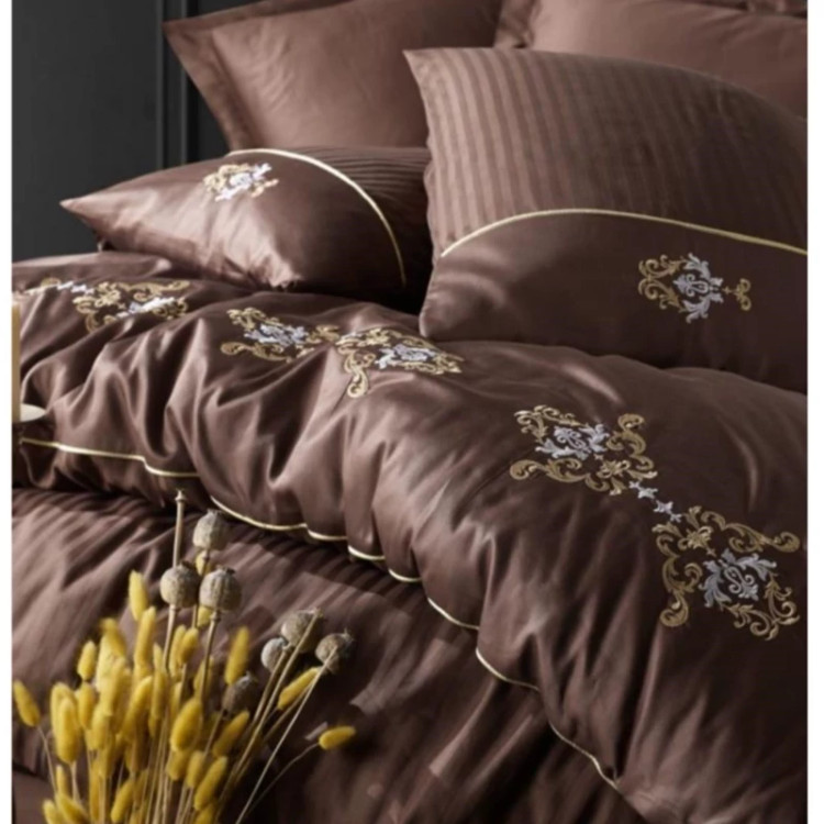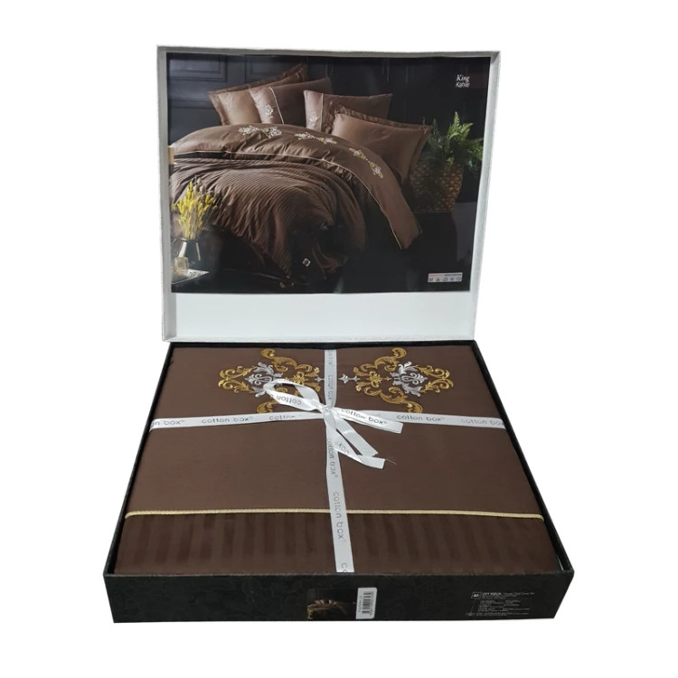 ست ملحفه کاتن باکس مدل Brode Saten King Kahve دو نفره 6 تکه