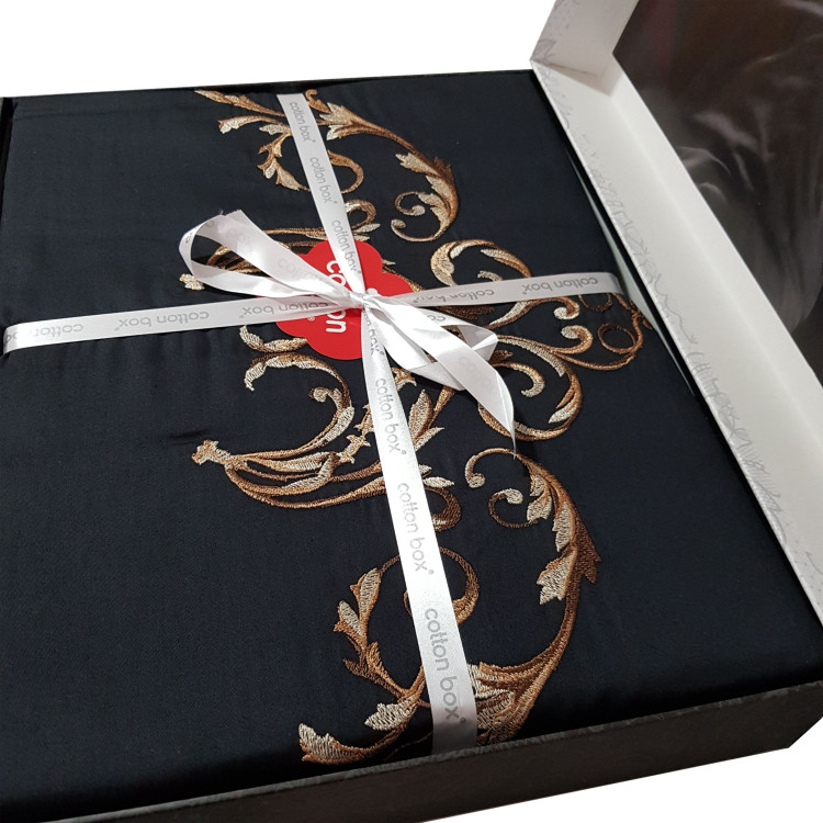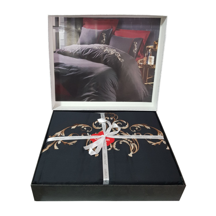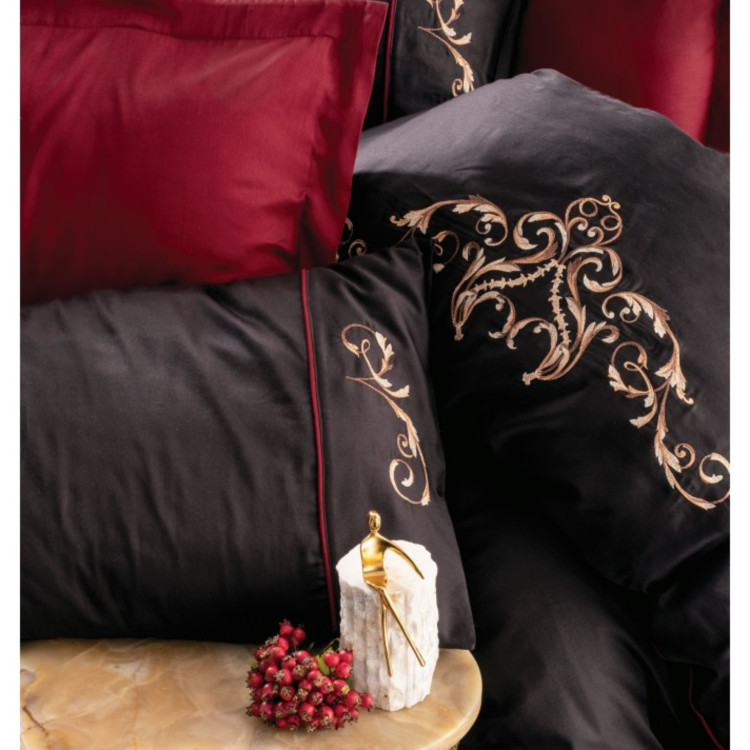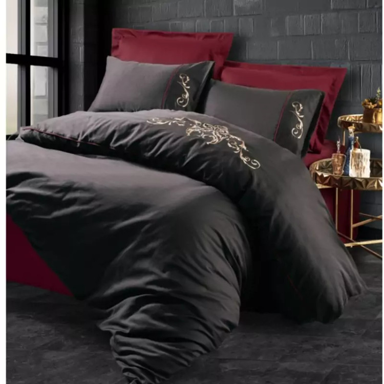 ست ملحفه کاتن باکس مدل Brode Saten Sarita Bordo دو نفره 6 تکه