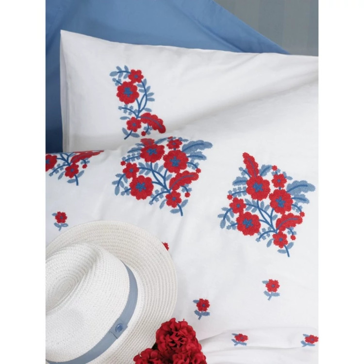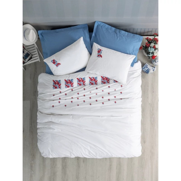 ست ملحفه کاتن باکس مدل Brode Rnf Nessa Mavi دو نفره 6 تکه