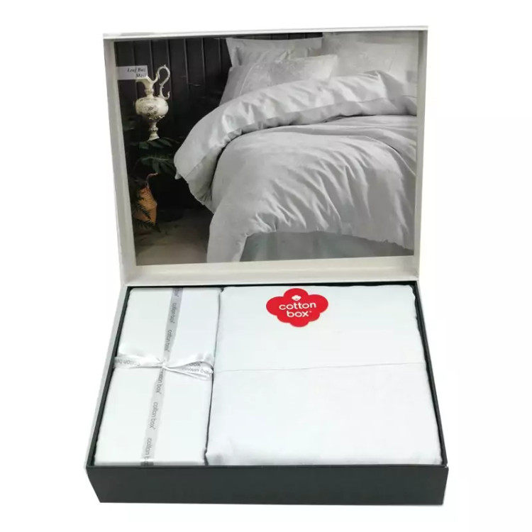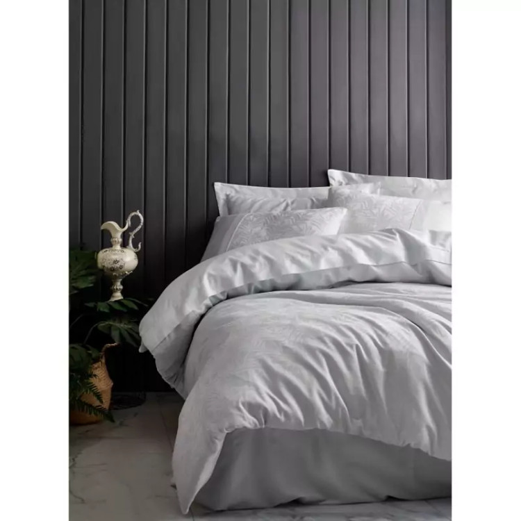 ست کاور کاتن باکس مدل Jakarli SatenLeaf Buz Mavi دو نفره 6 تکه