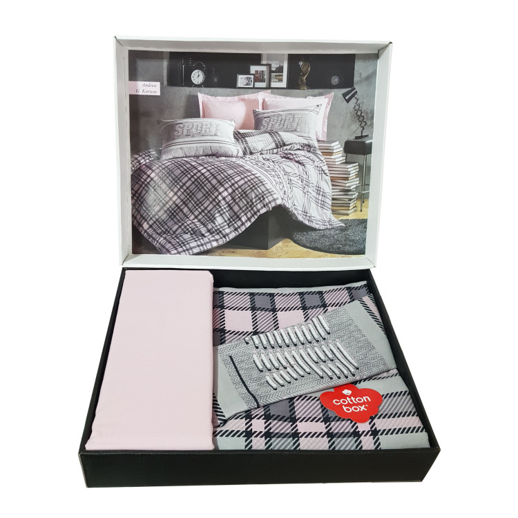 ست ملحفه کاتن باکس مدل Masculine Andrea Gul Kurusu دو نفره 4 تکه