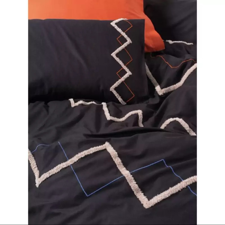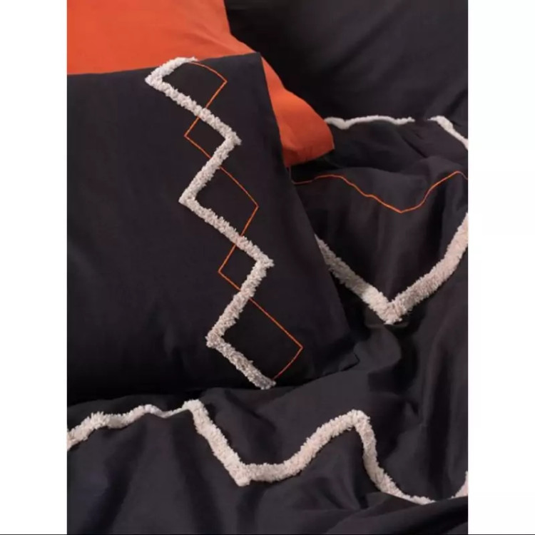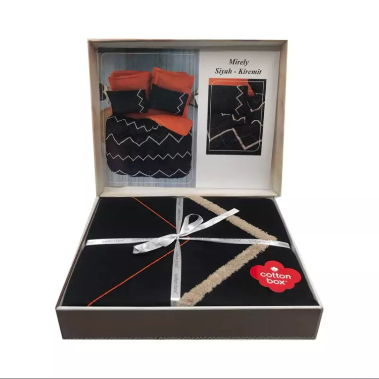 ست ملحفه کاتن باکس مدل Puff Nakisli Mirely Siyah-Kiremit دو نفره 6 تکه