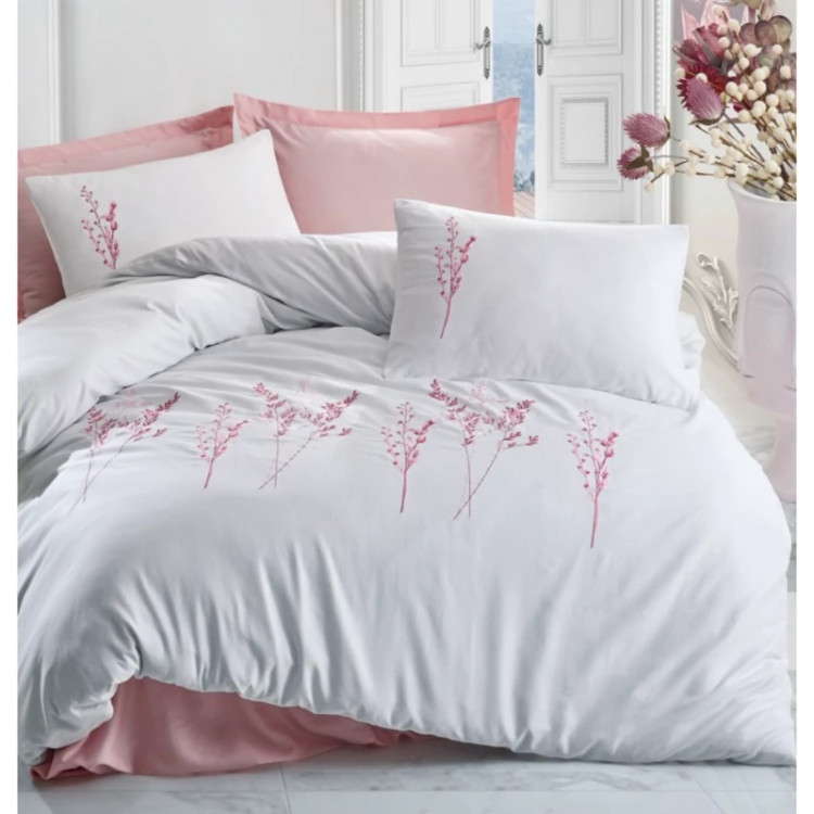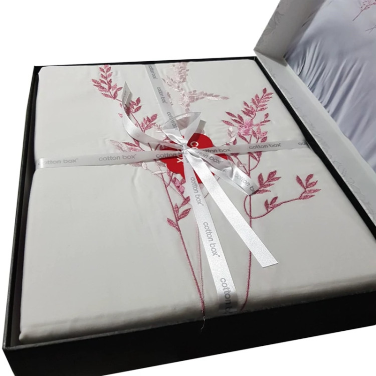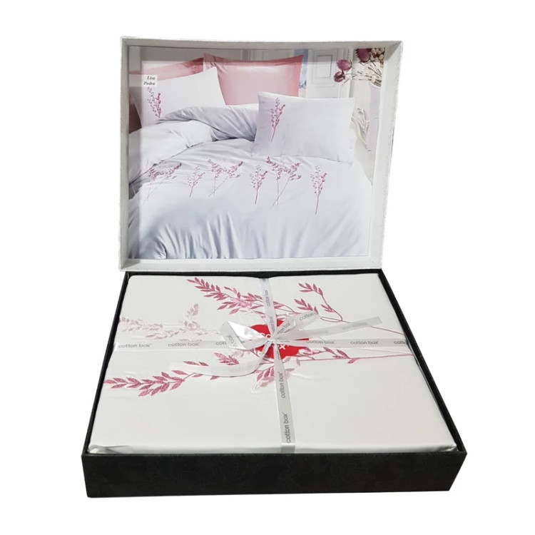 ست ملحفه کاتن باکس مدل Brode Saten Lisa Pudra دو نفره 6 تکه