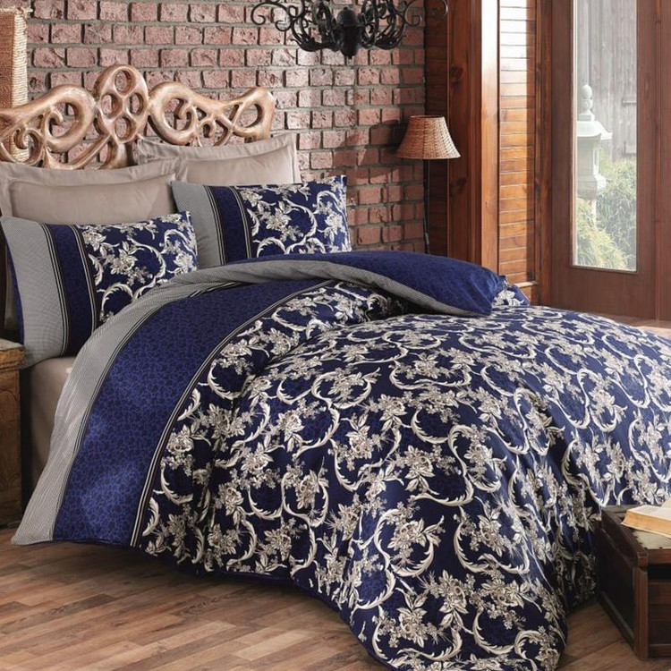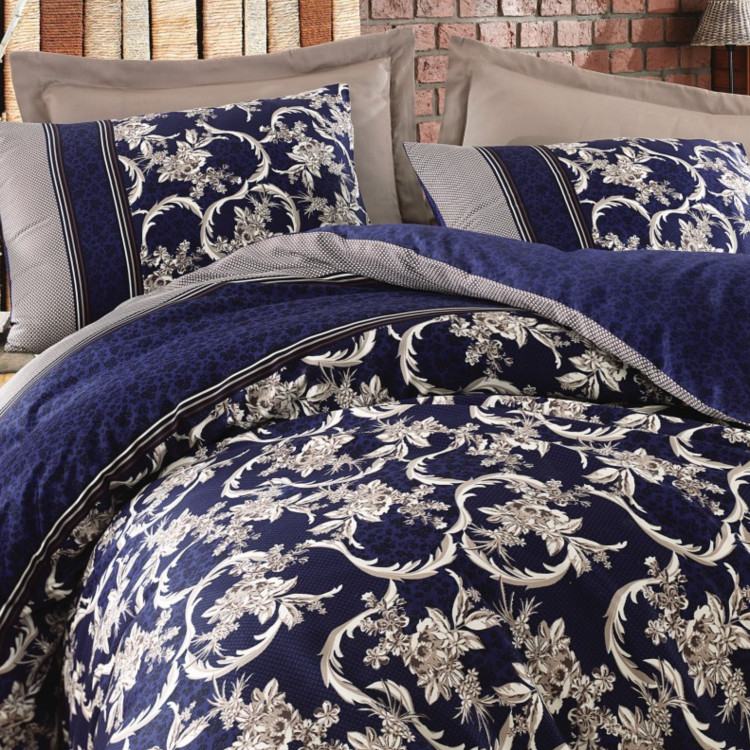 ست ملحفه کاتن باکس مدل Baskili Saten Pera Lacivert دو نفره 6 تکه