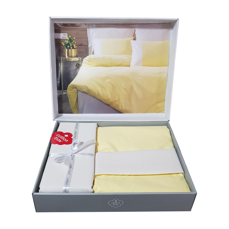 ست ملحفه کاتن باکس مدل Plain Sari-Krem دو نفره 4 تکه