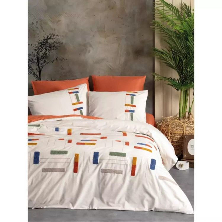 ست ملحفه کاتن باکس مدل Puff Nakisli Katy Tarcin دو نفره 6 تکه