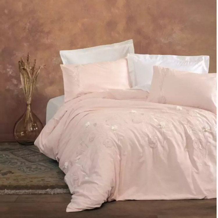 ست ملحفه کاتن باکس مدل 3D Nakisli Lesley Pudra دو نفره 6 تکه