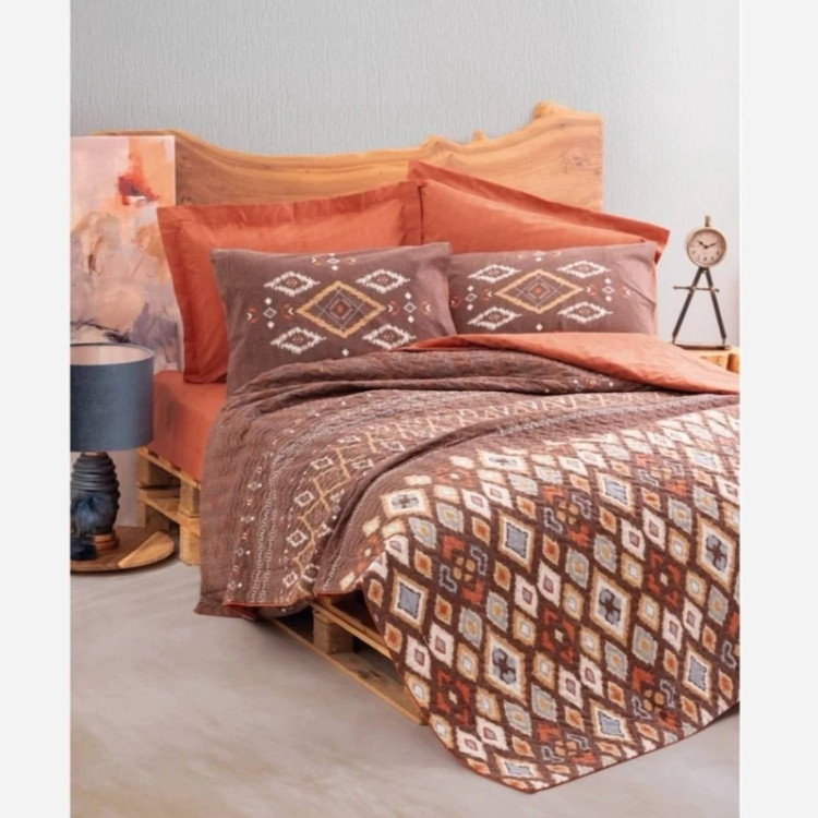 ست روتختی پنبه دوزی کاتن باکس مدل Ethnic Belize Kahve دو نفره 4 تکه
