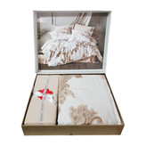 ست ملحفه کاتن باکس مدل Baskili Saten Loren Bej دو نفره 6 تکه