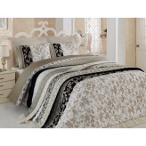 ست روتختی پنبه دوزی کاتن باکس مدل Mode line Doberah Bej تک نفره 3 تکه