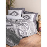 ست روتختی پنبه دوزی کاتن باکس مدل Ethnic Delos Antrasit دو نفره 4 تکه