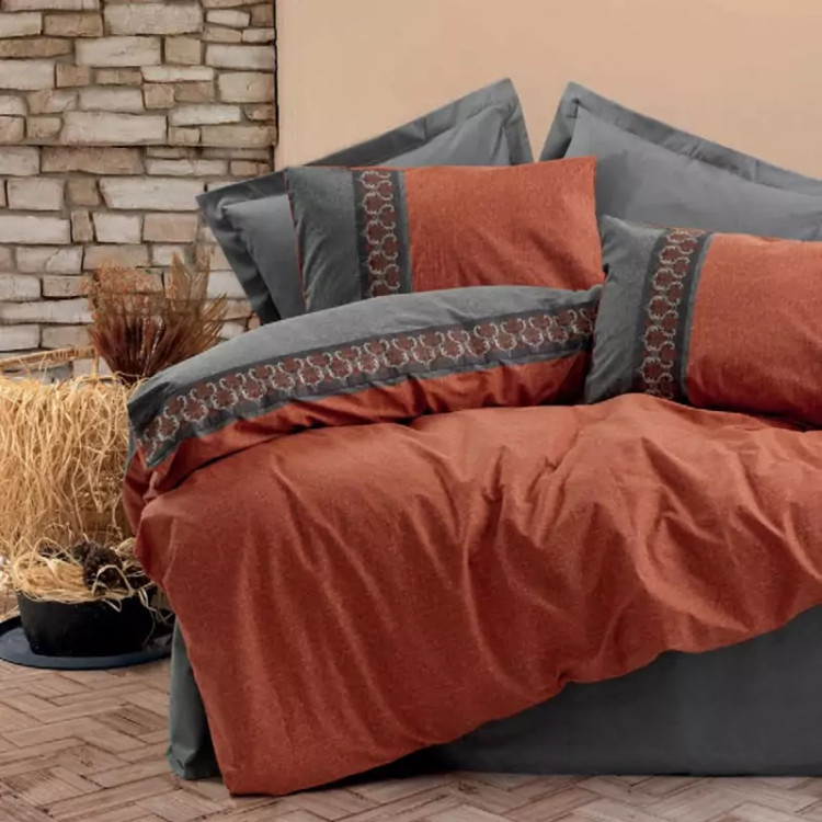 ست ملحفه کاتن باکس مدل Folk Art Tamaya Kiremit تکنفره 3 تکه