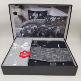 ست ملحفه کاتن باکس مدل Dark Round Gri دو نفره 4 تکه