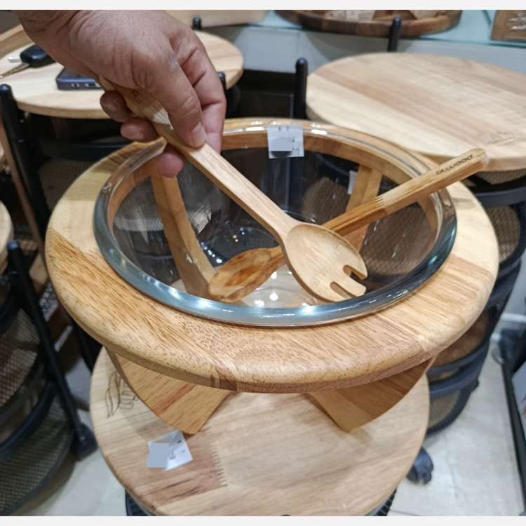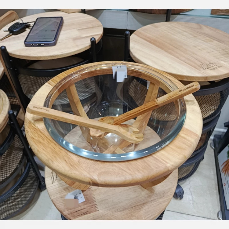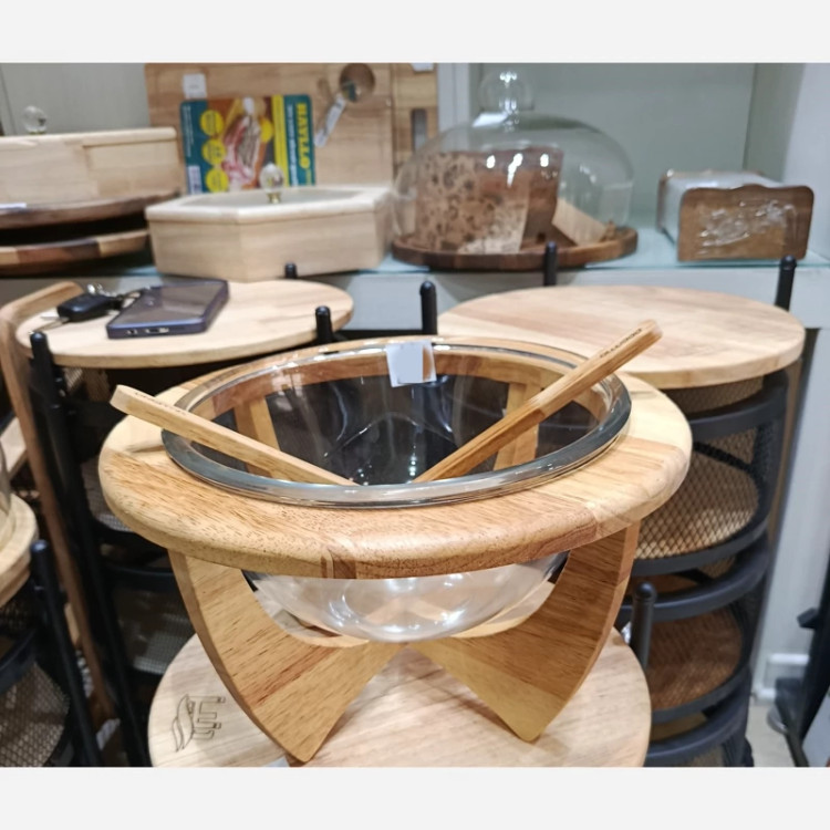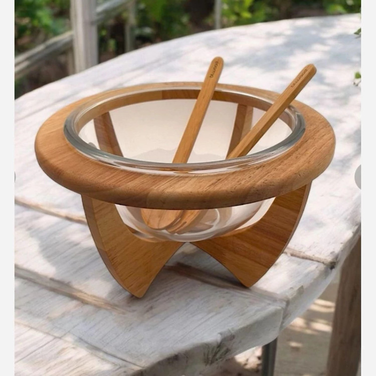 سالاد خوری پیرکس پایه دار چوب رابروود بلوود (پس کرایه)