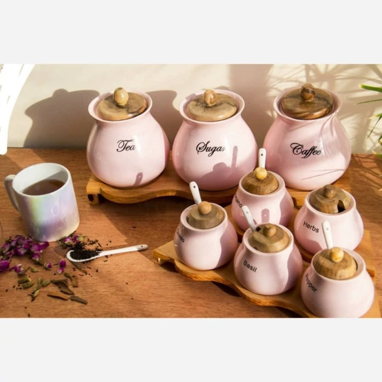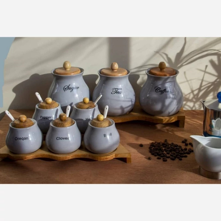 سرویس پاسماوری و ادویه مدل مودنا 8 پارچه سرامیکی و استند چوبی (پس کرایه)