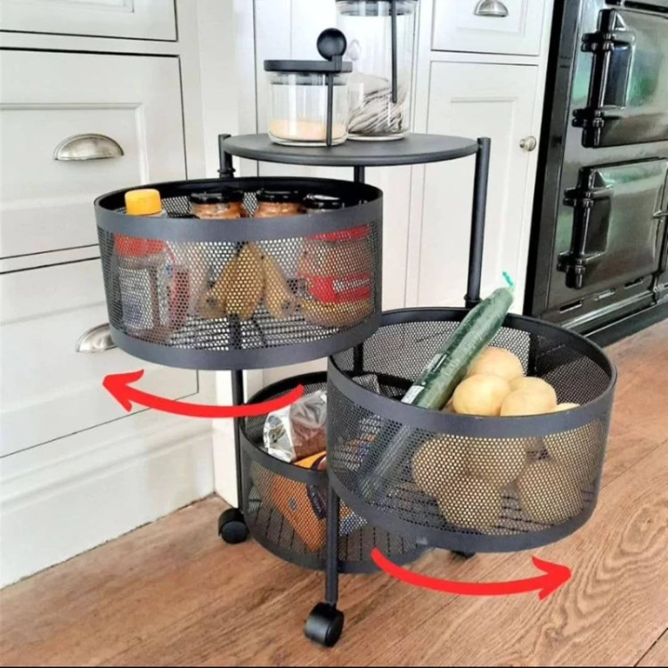 سبد سیب زمینی پیاز توری فلزی مشکی 3 طبقه چرخدار (پس کرایه)