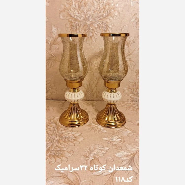 یک عدد شمعدان آنتیک 32 سانتی فلزی سرامیکی کد 118 ( پس کرایه )