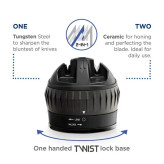 مجهز به دو تیغه سوئیسی برای تیز کردن چاقو های سرامیکی و استیل میباشد.