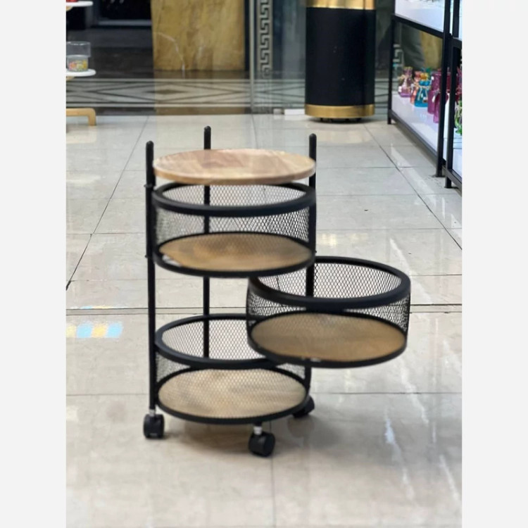 سبد سیب زمینی پیاز(جا پیازی) توری فلزی چرخدار 3 طبقه صفحه چوب DENIZ (پس کرایه)
