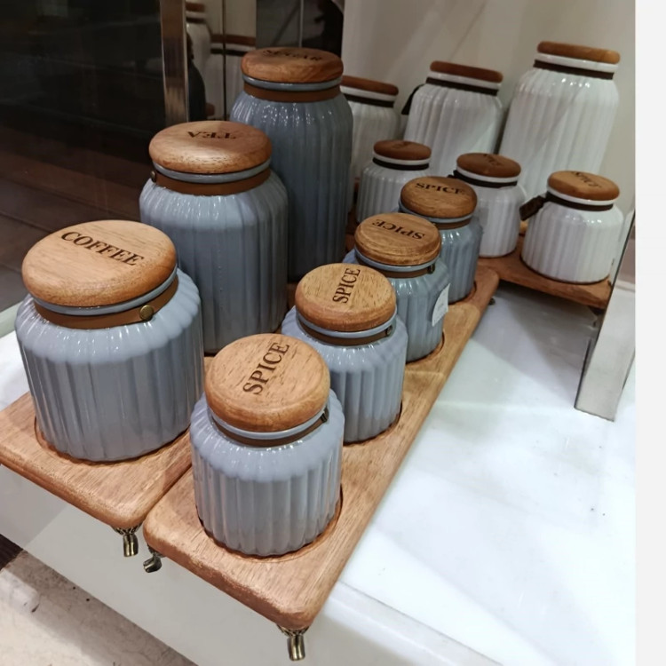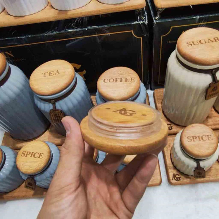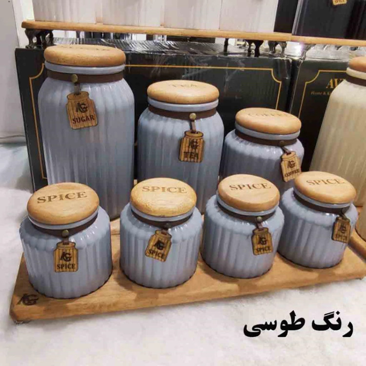 ست پاسماوری و ادویه 7 پارچه درب چوبی گلس کالر (پس کرایه)