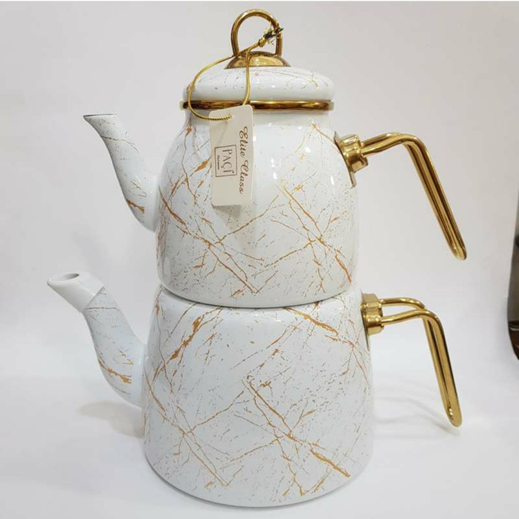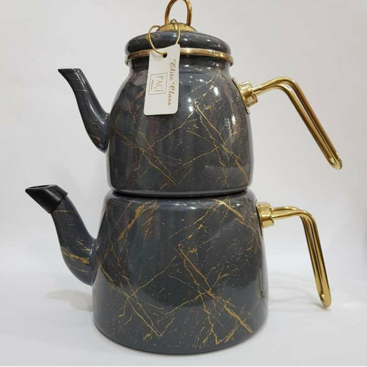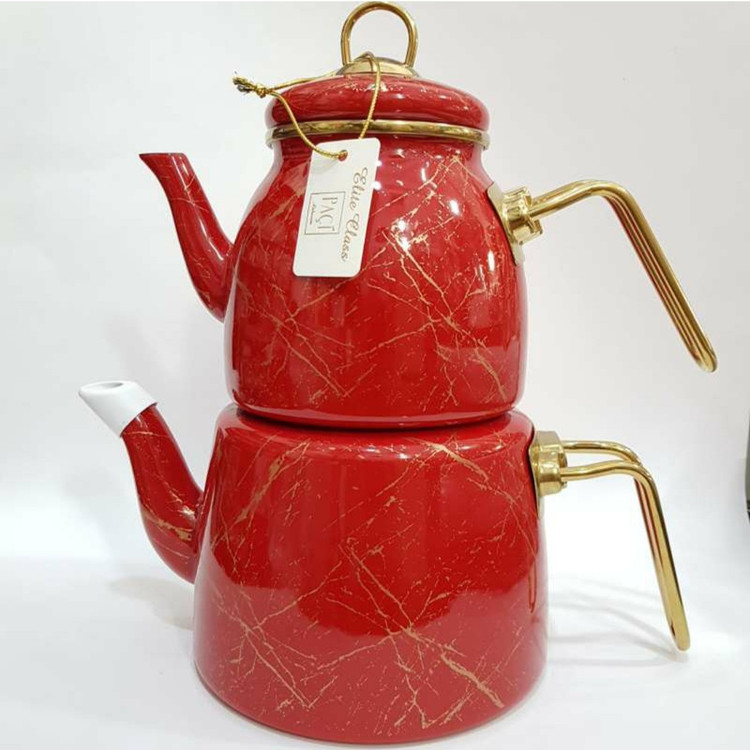 این کتری قوری محصول شرکت پاچی ترکیه و نمونه اصلی می باشد.رنگ های زیبای لعابی که روی پوشش فلزی کشیده شده به هیچ عنوان بر روی گاز سیاه و کثیف نمی شود.