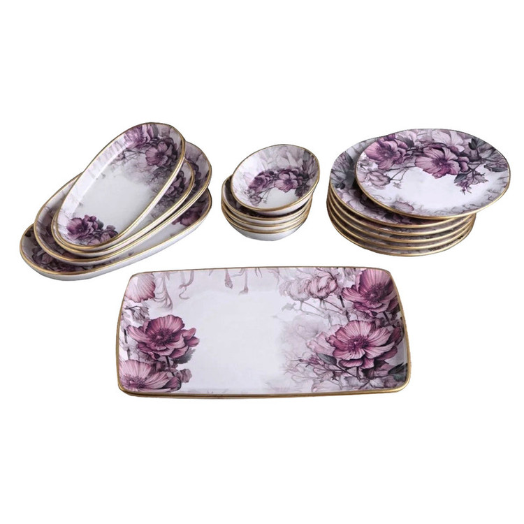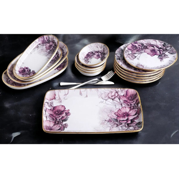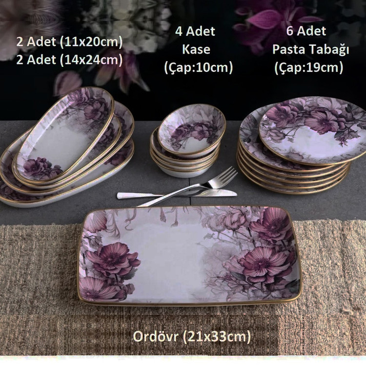 مجموعه بسیار نفیس 14+1 پارچه صبحانه خوری گونول محصول کشور ترکیه بوده و شامل 6 عدد بشقاب صبحانه خوری 19 سانتی متری و 4 عدد پیاله 10 سانتی متری و 1عدد سینی (دیس)21x33 سانتی متر دو عدد دیس بیضی 11x20 سانتی متر و 2عدد دیس بیضی 14x24 سانتی متر میباشد